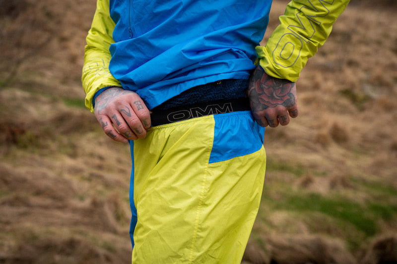 OMMイベントの必携装備基準を満たす最軽量かつ最小のレインパンツです。いざ天候が悪化したときにはその本領を発揮します。AW23よりウェストゴムを幅広にアップデートし、より快適に長時間着用できます。また背面パネルも高めに改良し、パックの下のジャケットがずりあがっても背中が露出しないよう、そのカバー域を拡げました。