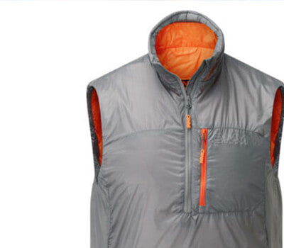 Rotor Vestはスリーピングバッグと同じ対重量比で最大の保温力を誇る最高級化繊 PrimaLoft Goldを中綿に使用し、わずか135g(Mサイズ)を実現した超軽量のインサレーションベスト。寒冷時のレイヤリングに最適です。本体はPrimaLoft Goldを40g/㎡、襟部分にもPrimaLoft Luxeを使用し保温性を向上、より柔らかく快適な着心地です。